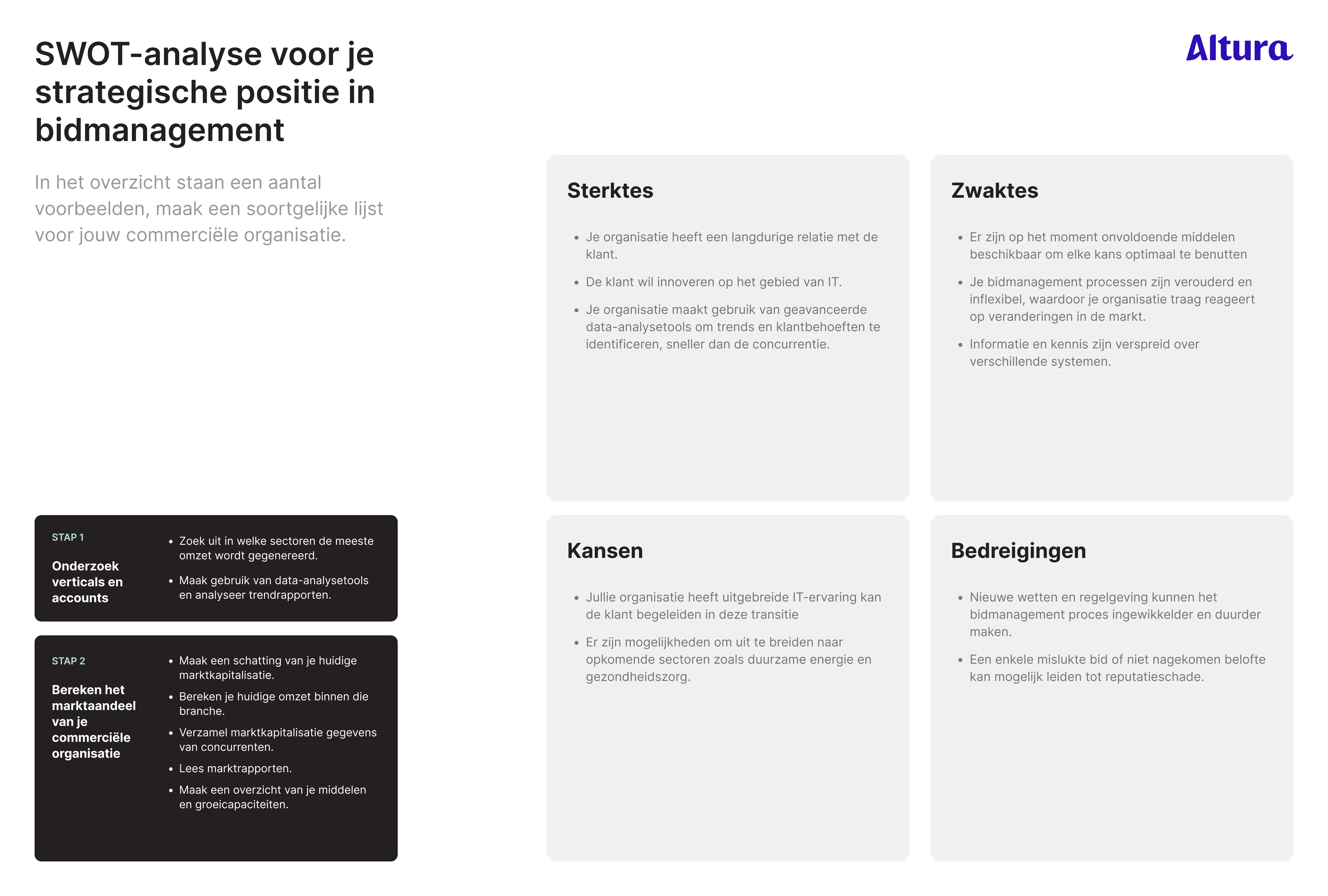 In 2 stappen een SWOT-analyse voor een beter begrip van je strategische positie in bidmanagement