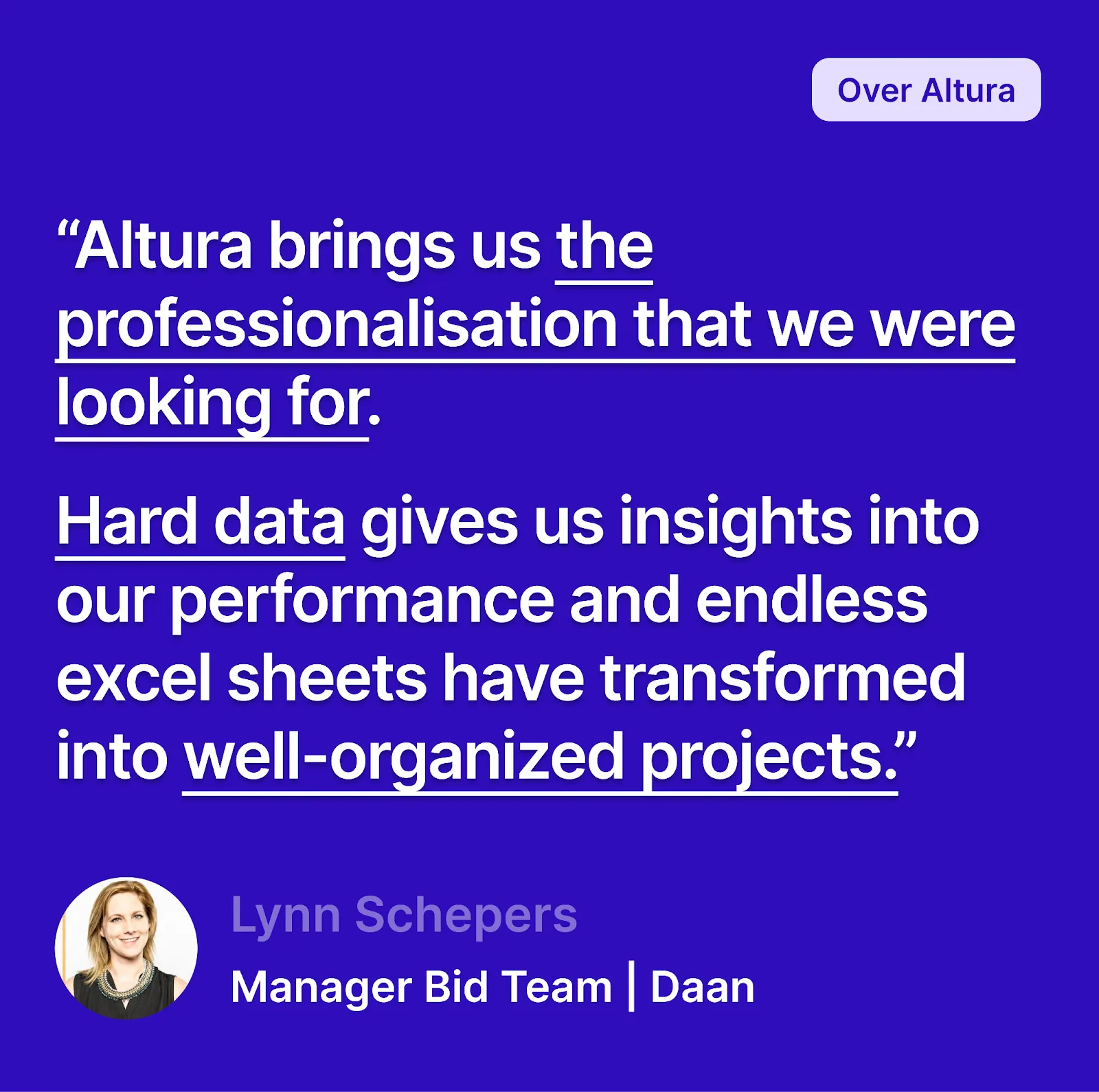 Altura saves time and frustration for the bid management team. Rogier de Lange, bid manager at Daan, sums it up in one sentence: