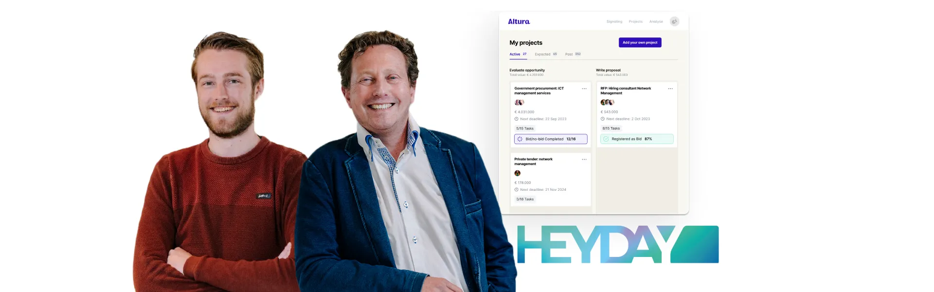 Thanks to Altura's Document Scanner, HEYDAY's search profiles have been set up better than before in TenderNed. They receive more suitable tenders. As Robin says: "The search filters are more extensive than, for example, in a TenderNed, which means you can search much better and get better results every morning."